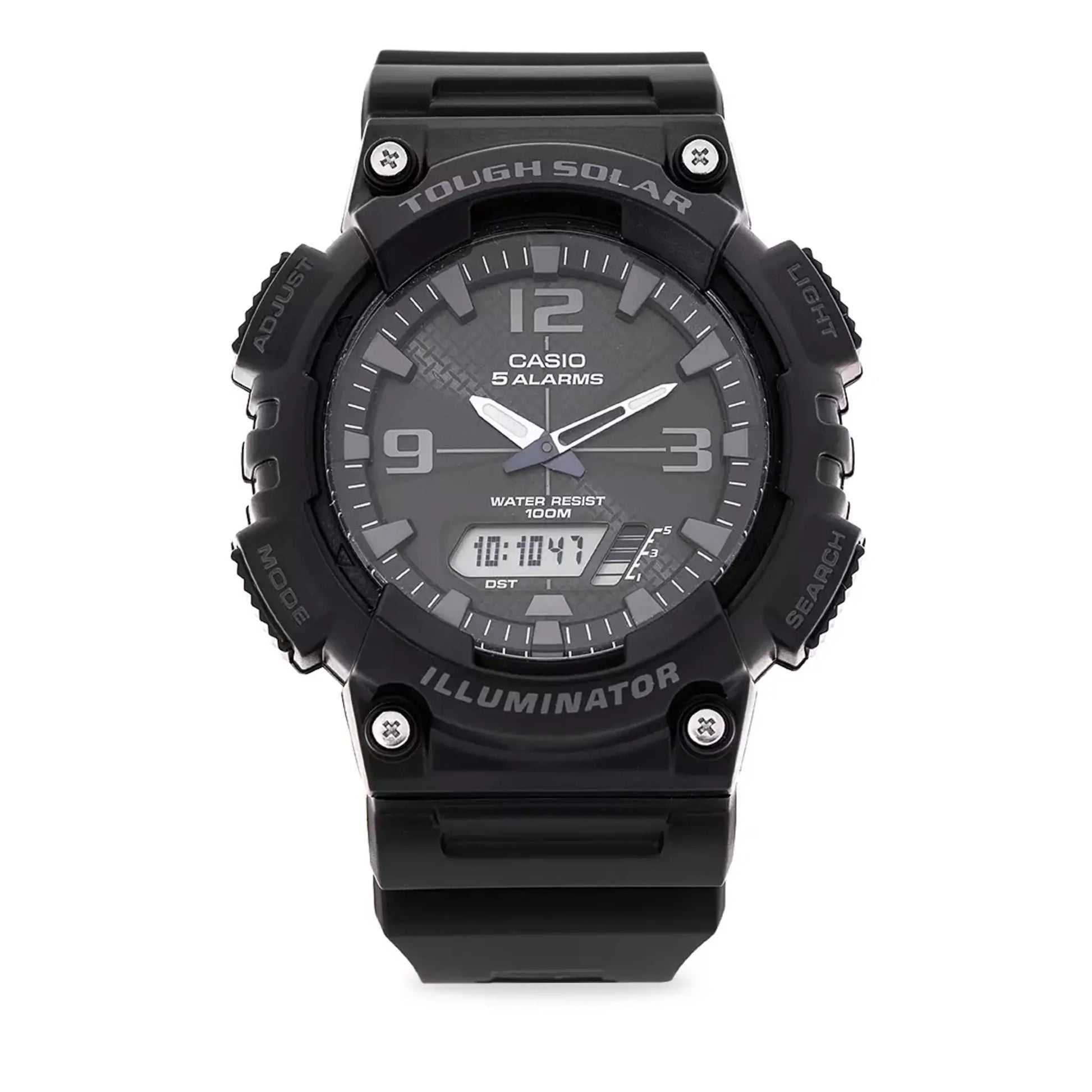 Movement: Japanese quartz digital movement powered by Casio’s Tough Solar technology — charges by sunlight and even indoor light, so battery changes are rarely needed.